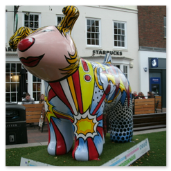 A short trail of 10 bears, within a relatively short walk around the town centre.
