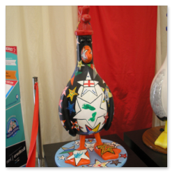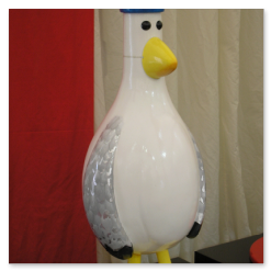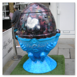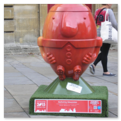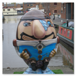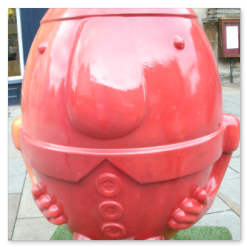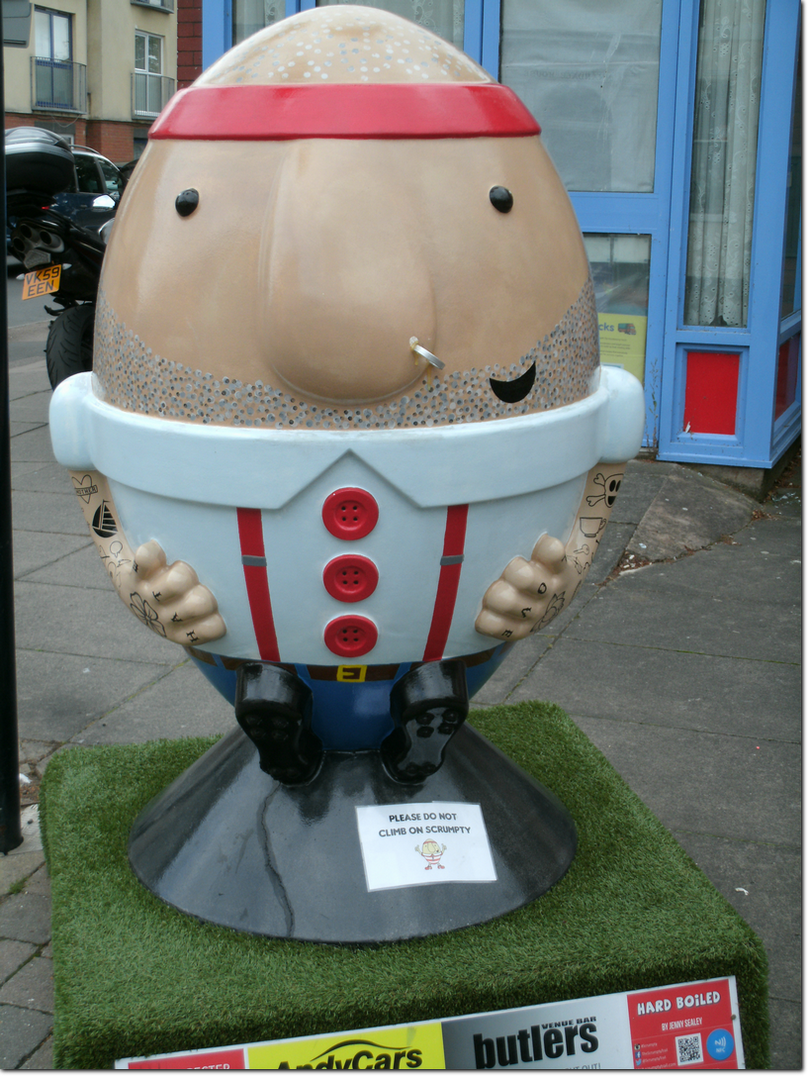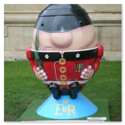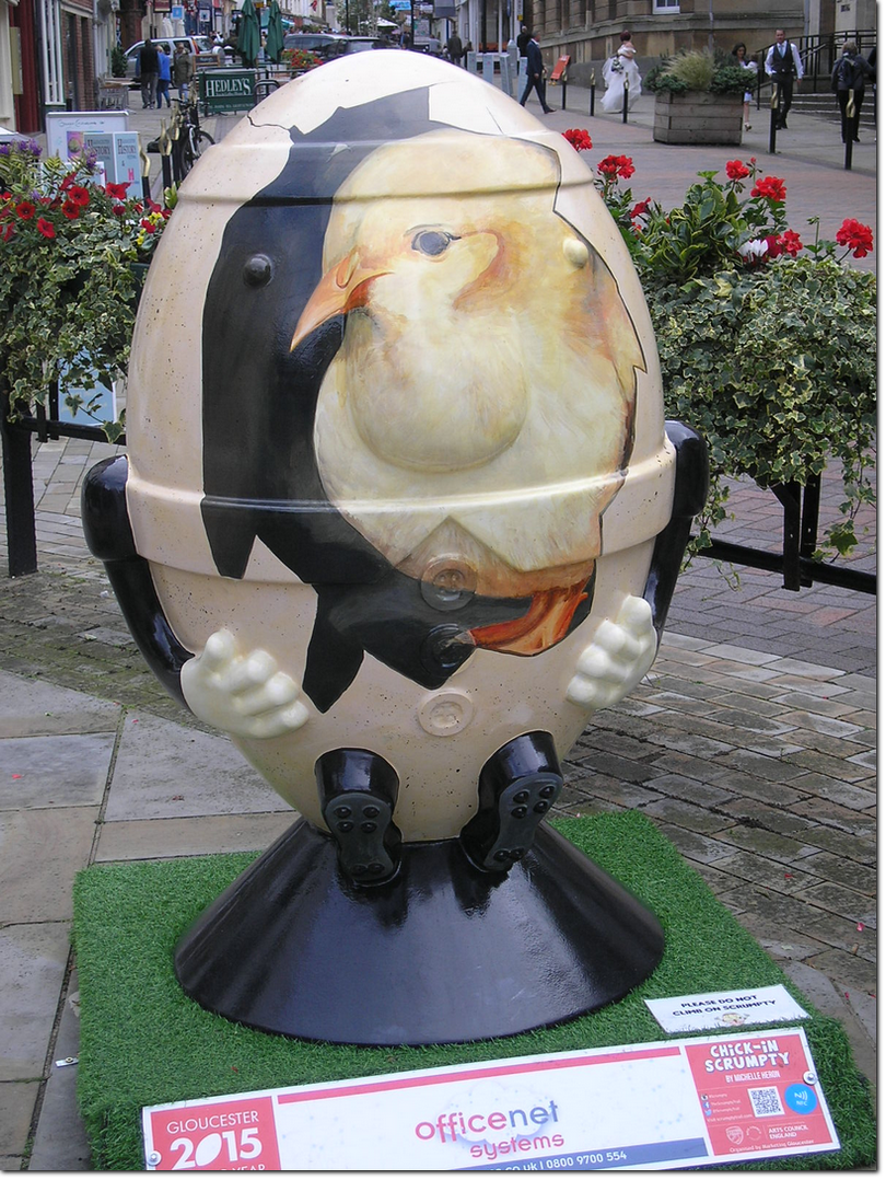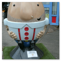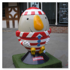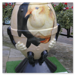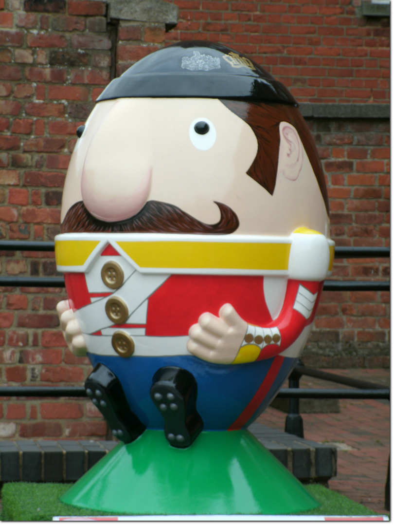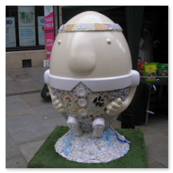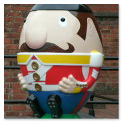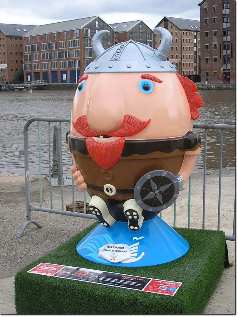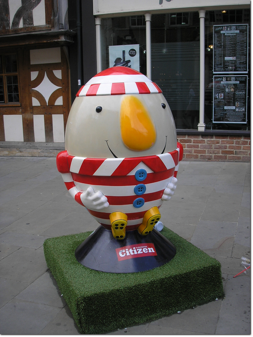 A cross between rugby balls and Humpty Dumpty.